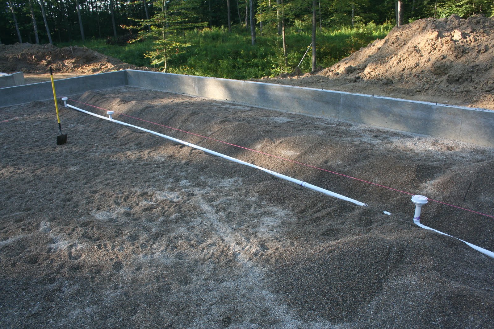 We had to bring in an additional 201 tons of pea gravel to backfill the interior of the garage area and bring it up to grade. Do you know how long it takes to move that much pea gravel using rakes and a shovel? Me either. I started moving it and quit after about 3 hours and a broken rake.